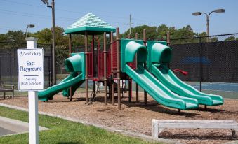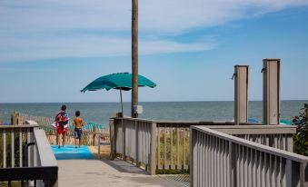 This condo is just steps to the following: Oceanside Deli that has sandwiches/homemade pretzels/pizza/ drinks/pastries/ice cream.....plus a separate Starbucks coffee/drink station. You're also right next to an outdoor snack stand, indoor pool, fitness center and 2 outdoor pools. In addition to the world-class tennis facility with indoor/outdoor courts on the west side of property (accessible via shuttle, walking or car) the ocean condo complex also has 4 tennis courts, basketball court and is just a 5-minute walk from your condo. Buy your summer weekly recreation badge for $40/person for 4 and older across the street at the Sea Colony Beach Shoppe. Parking pass for the week is included with your recreation badges.