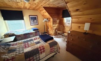 4 Bedrooms, 2.5 Baths, 7 beds, up to 8 guests, 4 window AC units (one in each bedroom during the summer months).