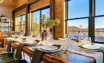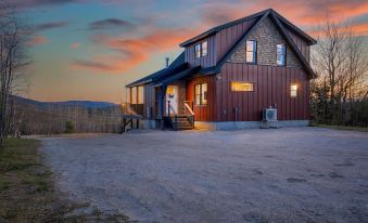 This new luxurious chalet accommodates up to 16 guests across 5 bedrooms and 3.5 baths, just 12 minutes from Sunday River, 9 minutes from Mt. Abram, and 5 minutes from Bethel Village. Ample parking available for large groups.