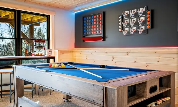 "The chalet was phenomenal and was even better than the photographs showed. Our grandkids never left the playroom and hot tub....Each bedroom was large, roomy and gorgeous. The main living room and Kitchen was perfect for our large family to socialize. The view of the sunsets on the large deck were breathtaking. It was difficult to leave this house, we didn't want the weekend to end.... " - Bob, March 2025