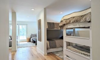 4 bedrooms: 2 bunk beds 2 queen beds and 1 king bed