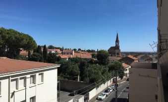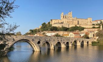 The nearest airport is Beziers Cap d'Agde Airport, just about 18 mins from hotel by car (14.3 km) away.Which airport is closest to Spacious accommodation between the old town and the arena, between the beach and the mountains.?