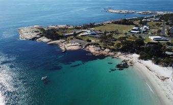 This is a very relaxed private cottage, set on the foreshore of Waub's Bay, adjacent to the park, with only the fine white granite sand dunes separating you and the aquamarine crystal clear waters of Tasmania's East Coast.