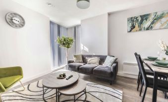 Welcome to your elevated apartment in the sky— a beautifully designed two-bedroom, two-bathroom apartment on the 13th floor of Birmingham’s prestigious Bank Building. Enjoy sweeping skyline views, premium amenities, and a location that places you in the very heart of Birmingham’s buzzing food, nightlife, and shopping scene. Sleeps 4 with plush bedding and high-end finishes throughout. Enjoy super-fast broadband, Netflix, and 2 smart TVs. Fully equipped kitchen with all amenities for a comfortable stay. Located in the heart of the city, just steps from top restaurants, nightlife, and major attractions. Building includes a residents' gym, stylish lounge, secure entry system.