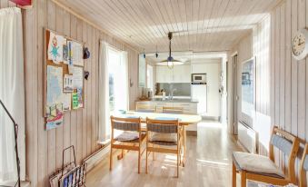 Single-family house, built in 1976. 1.2 km from the sea. Private: property 1'600 m2. Terrace (35 m2). In the house: washing machine, tumble dryer. Parking at the house. Grocery 400 m. "Steffen" - 450m to the fjord", 3-room house 81 m2. Object suitable for 6 adults. Living room with TV, CD-player, hi-fi system and DVD. 1 room with 1 double bed. 1 room with 2 beds. 1 room with 1 double bed. Kitchen (oven, dishwasher, 4 ceramic glass hob hotplates, microwave, freezer). Shower/WC. Terrace 12 m2, roofed. Facilities: children's high chair. Internet (WiFi). Please note: non-smokers only. Maximum 1 pet/ dog allowed. 760-10446