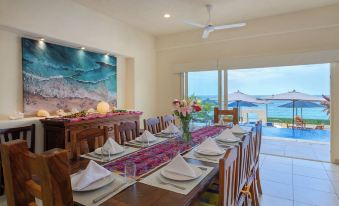 Casa Milagro is a 7 bedroom 8 bathroom Luxury Vacation Villa on Punta Negra Beach. It comes with a chef, an assistant chef, a house keeper, house man and laundry service that includes personal laundry. The chef will shop ($25 US taxi shopping fee not included), prepare, serve and clean up for two meals per day...either breakfast/lunch or lunch/dinner. The staff take Sundays and official Mexican holidays off.