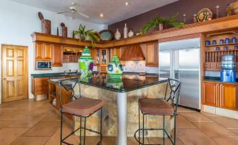 Hard to write this review! I know how great this house could be & I know how the house was while we were there. This house HAS everything, a gym, 2 hot tubs, a heated pool, an amazing cook, amazing views, an elevator, great location, and I could go on and on, BUT, unfortunately, we only got to enjoy a few of those perks. This house was hit by the hurricane in Oct. The house still needs alot of work to get it back to what it could be. The pool was great but heater was broken, the hot tub in the room never worked, the outdoor hot tub worked but no jets, and on the 2nd last day, it stopped heating as well. The faucet on the main level bar was about to fall off. We used that sink the 1st night and the glasses that we used were literally still sitting in the sink when we left. Opened the lower cabinets in the bar, only to smell the most over powering smell of mold, and I've ever smelled. Several missing appliances throughout the house and at the same time, huge refrigerators sitting in the kitchen unplugged, also filled with mold. I also understand that this is an open air house and its extremely hard to keep pest out, but finding a live rat roaming across the kitchen floor set several of the guest running! All that has led me to leave a less than perfect rating. Manager was also hard to communicate with. Just wish we would have know this BEFORE getting there. Owners dont want to invest into this property. Could have called and complained but where are going to go!!