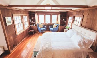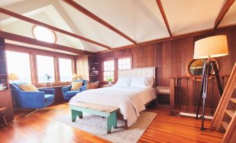 ✔ Main Living Space – Featuring a plush queen-size bed, cozy furnishings, and breathtaking water views.