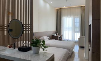 下午4點多去,房子還沒有打掃好。房間設施倒是齊全,但是,裏面有蚊子和蜈蚣。睡前設定空調18℃,早上被熱醒,發現空調到了25℃!!!有早餐,結果,除了涼菜,全是預製的,能想象油條是蒸熟的不是炸的嘛!!!!豆漿淡的兑水一樣,連麪湯都不如!!!!給個建議,既然花了錢搞了這麼好的地段和設施,在衞生、餐食上花點功夫吧!!!!