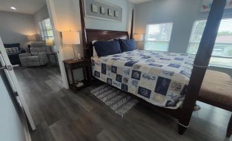 Overall a good stay. The high four poster king bed was wonderful for my husband and I! Small well appointed kitchen had all we needed. Just wish the coffee maker was not a hotel room size 5 cup maker, especially as the rental can host 6 people. Good thing I was our only coffee drinker. But having to brew two pots of coffee each morning was a bit tedious.