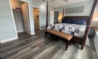 Overall we had an absolutely wonderful experience from check-in to check-out. We even asked the host for some local favorite eateries our first night & they were spot on with the recommendations. The apartment was super clean & very well maintained. The beds were SUPER comfy, pillows were perfect & we arrived during a major heat wave but the a/c was on & perfect temps. Being on the second floor I worried about being overly hot with just window a/c units but with every room having a unit & very nice ceiling fans the place stayed super cool the entire time. (Even during real feel temps of 112 while we were there). We enjoyed how close we were to everything but off the main road. It truly was a wonderful stay.