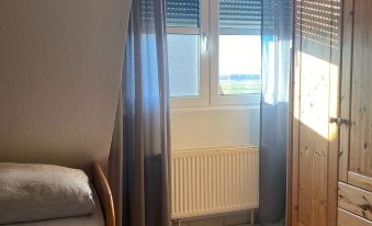 The holiday home at the end of a cul-de-sac is located directly in the Bantjedünen nature reserve. From here you have an unobstructed view of the beautiful dune landscape. The house has on the ground floor a large living room with a new cozy sofa corner, flat screen TV and a cozy dining area. A fully equipped kitchen with dishwasher, microwave, coffee maker etc. is also available. The guest toilet can be found in the hallway area on the ground floor. The upper floor is equipped with a bathroom including shower, toilet and washing machine. The first bedroom on the upper floor has a double bed 180cmx 200cm and the second bedroom has an extra wide loft bed 140cm x 200cm per bed and a single bed. A children's travel bed is also available as well as a high chair. The entire house is tiled for allergy sufferers. Furthermore, a terrace with garden furniture, your own garden and a parking space belongs to the house. The city center and the beach are about 10 minutes away by bike. to reach.About pets:No pets allowed.About checkOut:Check out before 11:00 AM.About children:Children allowed: ages 0-17.About checkIn:Check in after 3:00 PM.About smoking:Smoking is not permitted.About events:No events allowed.