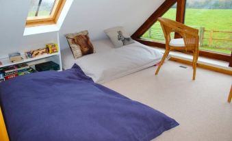 As well as spacious open plan living room with kitchen/dining/ sitting, we have created an amazing mezzanine gallery with large gable window overlooking the surrounding fields and stunning countryside. Perfect for evening drinks or younger guests to enjoy as a play area / den with bean bags.