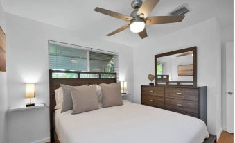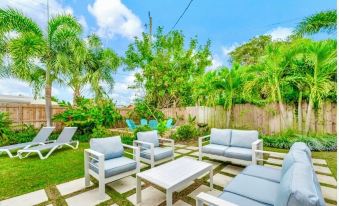 Delray Beach is waiting for you at this 4-bedroom house. This phenomenal property boasts 1 king bed, 2 queen beds, and 1 bunk bed. Primary bathroom has huge walk in stone steam shower for guests to relax and unwind in this tranquil retreat. Enjoy the convenience of amenities minutes away to the beach and famous Atlantic Ave for a lively evening. In the property enjoy fully equipped kitchen, laundry room , strong wifi with desk, heated salt pool, outdoor kitchen under shaded tiki hut, firepit, zen yoga meditation area, lots of lounge areas inside and out perfect for large families to fall in love with Delray Beach and enjoy the magic it has to offer.About pets:Pets allowed: dogs (limit 1 total).About checkOut:Check out before 11:00 AM.About children:Children allowed: ages 0-17.About checkIn:Check in after 3:00 PM.About smoking:Smoking is not permitted.About minBookingAge:Minimum age to rent: 21.About events:No events allowed.