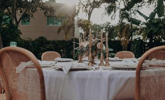 We were there for a wedding. The wedding should have been held at this property. It is so close to downtown and it is an oasis in the center of town. Early morning coffee with birds in the background. Food was great and so were the staff we interacted with.