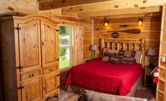 The cabins offer a queen size bed, sleeper sofa, recliner, cable TV, wireless internet, gas grill and a kitchenette with a microwave, refrigerator & Keurig coffee maker.About pets:No pets allowed.About checkOut:Check out before 10:00 AM.About children:Children allowed: ages 0-17.About checkIn:Check in after 4:00 PM.About smoking:Smoking is not permitted.About minBookingAge:Minimum age to rent: 21.About events:No events allowed.