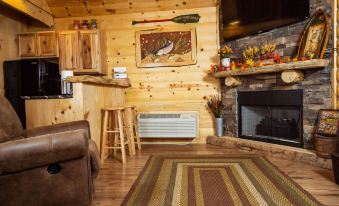 The cabins offer a queen size bed, sleeper sofa, recliner, cable TV, wireless internet, washer/dryer, gas grill and a kitchenette with a microwave, refrigerator & Keurig coffee maker. A charcoal and a gas grill is available in the common area along with a fire pit.About pets:No pets allowed.About checkOut:Check out before 10:00 AM.About children:Children allowed: ages 0-17.About checkIn:Check in after 4:00 PM.About smoking:Smoking is not permitted.About minBookingAge:Minimum age to rent: 21.About events:No events allowed.