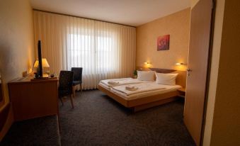 Wir waren von der Freundlichkeit des Personals angetan. Das Zimmer ist groß. Hunde sind willkommen. Unweit vom Geiseltalsee. Schnell mit dem Rad zu erreichen. Wasserkocher bzw. Kaffeemaschine wär schön auf dem Zimmer. Kostenloser Parkplatz!