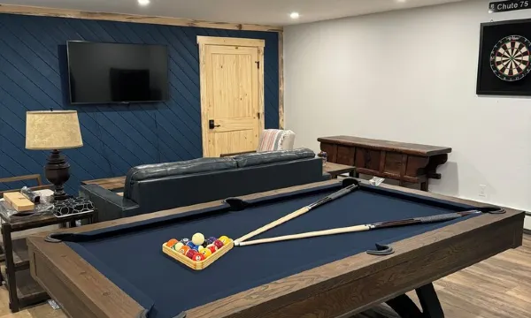 The lower level has another family room area with a large Smart TV, pool table, dart board and comfortable seating. Great place for the kids to hang out! Laundry room with washer and dryer. Laundry soap supplied.