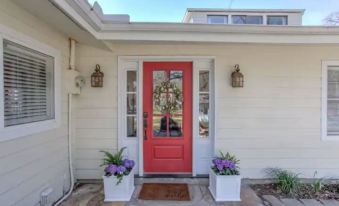 The kitchen is equipped for long term stays and cooking for large groups. The home features sleeping for 12 adults, 14 with pull out sofas. Enjoy cooking breakfast on the Blackstone griddle and dining under the tall oak trees.About pets:No pets allowed.About checkOut:Check out before 11:00 AM.About children:Children allowed: ages 0-17.About checkIn:Check in after 3:00 PM.About smoking:Smoking is not permitted.About minBookingAge:Minimum age to rent: 25.About events:Events allowed: family gatherings and birthday parties.Maximum event attendees: 20.