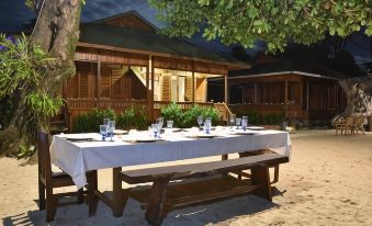 I went for a diving holiday with some friends and, both the diving and the resort, had been great experiences. I must say, first of all, Sarah is a very nice person, very careful, very attentive to all the different needs of her guests. We all loved her lovely food: fresh veggies, amazing fish, specials with spices… The cottages are simple but very nice and comfortable. We almost didn’t realize we had no electricity during daytime. All the employees are very nice too! We all left the island plenty of peace and beauty. We all would love to come back asap!