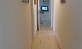 The floor and doors are white. It has got 7 singles beds and 1 double bed, there's a bunk bed in the maid's room.
