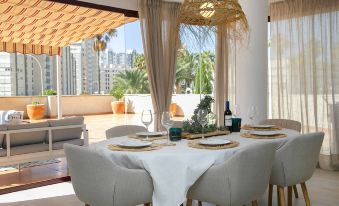 Playa de Levante: Beautiful apartment block "Coral Beach", 22 storeys. 3 km from the centre of Calpe, 150 m from the sea, 150 m from the beach. For shared use: property (fenced), 3 swimming pools (seasonal availability: 01.Jan. - 31.Dec.). Shower/WC in the pool area, children's pool, outdoor shower, terrace. In the house: lift. Supermarket, restaurant, bar 100 m, bus stop 44 m, sandy beach "Playa de la Fossa" 150 m, swimming bay 300 m. Golf course (9 hole) 12 km, tennis 3 km. Nearby attractions: Aqualandia, Mundomar, Terra Mítica, Terra Natura, Benidorm Palace (Benidorm). "Coral Beach 06", 4-room apartment 102 m2. Spacious and bright, renovated in 2024, modern furnishings: living/dining room with satellite TV, air conditioning and forced-air heating. Exit to the terrace. 1 room with 1 french bed (150 cm, length 190 cm), air conditioning and forced-air heating. 1 room with 1 french bed (150 cm, length 190 cm), air conditioning and forced-air heating. 1 room with 1 french bed (160 cm, length 190 cm), air conditioning and forced-air heating. Large, open kitchen (oven, dishwasher, 4 ceramic glass hob hotplates, toaster, kettle, freezer, electric coffee machine). Exit to the terrace. 2 showers/WC. Air-conditioning, forced-air heating, boiler (80 litres). Large terrace. Terrace furniture. View of the resort. Facilities: washing machine, iron, hair dryer. Internet (WiFi, free). Please note: not suitable for small children. Non-smoking house. VT-510588-A ESFCTU00000302900052240100000000000000000VT-510588-A6