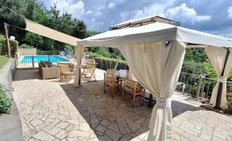We spent 2 weeks in the villa in August 2024. The house is beautifully situated on a hill side and feels very private, as there are only very few neighboring houses . The greenery around the house is very well maintained and further adds to the sense of privacy. In the house you can find everything that's needed for staying and feeling at home - from an iron and washing machine to wine glasses. The huge terrace overlooking the surrounding mountains features comfortable seatings and invites for long hours of relaxing, dining and jumping into the pool. The villa comprises two separate levels, each having a bathroom and a kitchen, which is perfect for a group of two families, as was the case for us. The pool is clean, not too deep, and receives maintenance from the host on a regular basis according to need and not by just adding tons of chlorine into the water which would be much easier but less enjoyable for the guests. AC works really well and allows for comfortable nights despite the heat.