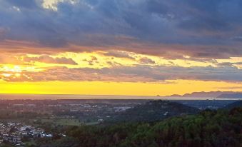 Easy access via a wide comfortable road (which is not frequent in hillside houses) and proximity to all services (see map), only 5 turns to go down to the village at the foot of the hill where to get supermarkets, shops and restaurants in 3 minutes by car