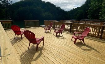 This 2 Story Lake House is a Large Group Vacationers Dream Featuring 6 Bedrooms and 6 Bathrooms (each Bedroom Has Own Bath). 2 Full Length 48 Foot Wide Decks (that's 1000 Additional Sq Ft of Living Space for Your Enjoyment) All With Beautiful Lake and Mountain Views. Large gourmet Kitchen, Laundry Room with washer and 2dryers. 2 Story Dock With Covered Slip, Dock Furniture and a Slide! Plenty of Parking. Free Internet and Long Distance and complimentary GOLF CART!