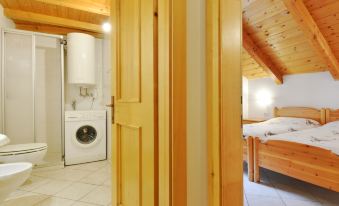 Beautiful, comfortable apartment house "Villa Placidia", 3 storeys, renovated. 11 apartments in the property. In the centre of Campitello 2 km from the centre of Canazei, in a busy, sunny position, 200 m from the skiing area, on a main road, south facing position. In the house: central heating system, heating available only from 01.Dec. - 01.May.. In Winter: please take snow chains. Public parking 500 m extra. Grocery 200 m, supermarket 500 m, restaurant, bar 200 m, bus stop 20 m. Chair lift 200 m, ski bus stop 20 m. Nearby attractions: Sella Ronda 400 m, Lago di Carezza 21 km. "Villa Placidia Apt 33", 3-room apartment 65 m2 on 2 levels on 3rd floor. With sloping ceilings, comfortable and wooden furniture furnishings: living/dining room with 1 sofabed, 1 pull-out bed, dining table and TV (flat screen). Exit to the veranda. 1 room with 2 beds. Kitchenette (4 hot plates, oven, dishwasher, freezer). Shower/bidet/WC. Upper floor: open gallery with sloping ceilings with 2 beds. View of the mountains and the valley. Facilities: washing machine, safe, hair dryer. Internet (WiFi, free). Please note: suitable for families. Non-smokers only, no parking. Maximum 1 pet/ dog allowed. Fire extinguisher, no lift. IT022036B4JO6ZHYCY