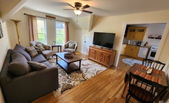 This was a great, cozy place for my wife and I to stay in Collinsville. The rooms were tastefully decorated, in great shape, updated, clean, and peppered with cute artwork based on the "when pigs can fly" theme that always brought a smile to my face when I found another one. The queen bed was very comfortable; the kitchen had all of the appliances, dishes, and cookware we needed; the HVAC system was easy to use and kept the rooms at whatever temperature we wanted; and there was a nice deck with a pretty view of the Farmington River. The location was perfect: within a short walk of several restaurants, the Farmington River Trail (a 10-mile long paved trail along the beautiful Farmington River for walking, running, or biking), a store where you could rent canoes and kayaks to head out into the very calm Farmington River, and a museum (which, alas, we didn't have time to visit). The owner, Carol York, was friendly and provided prompt answers to all of the questions we asked; she also provided a helplul description of recommended restaurants and things to do in the area. We had a very pleasand and enjoyable 1-week stay there.