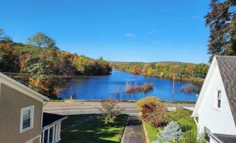 Quaint brand new 1 BR apt in downtown Collinsville, perched across the street from Farmington River and Rails to Trails. Enjoy the river view from your private deck. Just steps to everything Collinsville has to offer... Voted one of "America's 10 Coolest Small Towns" by Frommer's Budget Travel Magazine. Quaint restaurants, stores, antique shops in downtown Collinsville. Canoe/Kayak/Paddleboard; Fishing; run/walk/bike the Farmington River Rail Trail; hiking trails and Ski Sundown nearby. Summer Music on Main and Farmers' Market; Yearround Friday night music at LaSalle; Winter ski at nearby Ski Sundown.