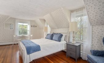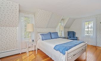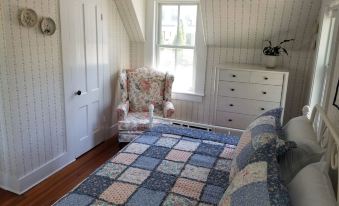 Charming but somewhat steep stairs (be aware if you have any knee/hip/leg issues) lead to the second floor featuring a large master bedroom (queen bed) with bistro table overlooking the river for your morning coffee or a work space if you're on a work trip, 24" TV for late night watching; Newly renovated vintage bathroom oozing with charm; Second bedroom (full bed plus a twin trundle) with a window seat overlooking the water. We also offer a Pack n Play for little ones, and an inflatable mattress.