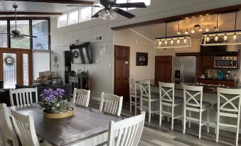 Open floor plan kitchen, dining and living room. Great for large gatherings with plenty of room to sit. Kitchen is nicely updated, and fully stocked with most every utensil and appliance needed! Kitchen also provides a nice bar that can sit 8 people, along with a TV for entertainment. TV's are located in all bedrooms for a total of 5 in the house, all equipped with Direct TV.