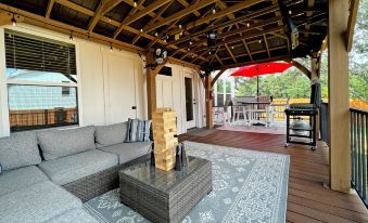 Lastly, Relaxation awaits on our inviting outdoor patio where family and friends can lounge, sip their morning coffee, enjoy an evening cocktail, soak up the peaceful surroundings, grill under the covered patio with fans, challenge friends to a game of cornhole, or just simply enjoy the outdoor smart TV!