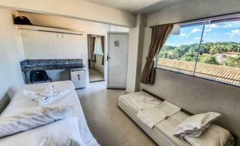 Com excelente localização, me hospedei com a família por três dias. No início tivemos uma boa impressão graças a pessoa que teve paciência em aguardar nossa chegada vez que não há portaria 24hs e só conseguimos terminar nossa viagem perto de 20hs em virtude de imprevistos nas estradas. Os quartos embora de tamanho agradável, são razoáveis, visivelmente carecem de retoques e reformas. As portas e janelas necessitam de reparos. Há próxima às portas de entrada um dispositivo na parede com uma chave - imagino que seja uma espécie de chave geral do quarto - que não podíamos sequer encostar pois dava choque. Cama com bons colchões e só. Travesseiros ruins e roupa de cama e banho - sobretudo colchas/mantas - que passam a impressão de falta de limpeza/higiene e qualidade (toalhas). Ar condicionado antigo, porém eficiente. Não tem ventilador. Gostando ou não do aparelho, nos vimos obrigados a usar vez que preferimos a privacidade de manter tudo fechado e o período estava muito quente. Banheiro ok. TV ok. Não tem telefone para contato com a portaria. O hotel como um todo tem uma aparência de abandono e improviso. Cadeiras postas do lado de fora dos quartos visivelmente gastas e antigas. A área da piscina estava fechada devido a uma suposta reforma. Nesses dias não vimos nenhuma intervenção na obra. Por outro lado, tiveram o cuidado de disponibilizar acesso ao clube náutico que fica muito próximo (mais ou menos 5 min de caminhada) e é bem estruturado. O café da manhã é lamentável. O que valeu realmente a pena foram apenas os deliciosos bolos feitos e servidos na hora. Sempre aberto com algum pequeno atrasado, tinha apenas duas opções de frutas, não tem suco natural (apenas refrescos), nem ovos mexidos. Imaginamos que a situação enxuta se deva ao escasso e notável número de hóspedes que havia nas datas. Por outro lado, questionamos se haveria possibilidade de ser feito (ovos) e estamos até hoje esperando a resposta. O hotel / espaço tem muito potencial, mas parece esquecido. É uma pena com aquela vista maravilhosa.