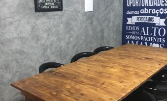 Sobrado with 02 bedrooms, 02 bathrooms, sleeps 4 people in each room, and in ROOM 01 has 01 bed of house and 01 bunk and in ROOM 02 has 01 double bed and 02 mattresses on the floor, living room with SKY TV with open channels and DVD with plenty of movie library, books. Full kitchen with water filter (cold and natural), microwave, electric oven, blender, mixer, refrigerator with frezzer with independent barbecue and everything integrated as a "loft". .