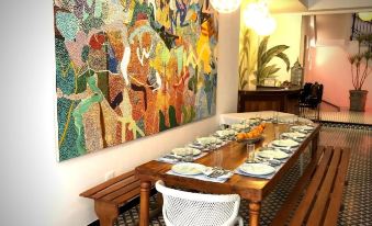 The house is also an art gallery. Local artists who have draped the walls with colorful pieces that can be purchased directly from the artist who will come and prepare it for your journey back to your country.