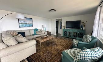 Enjoy a family movie night on the 4K Smart TV with cable, streaming capabilities, and a DVD player.