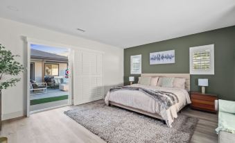 The backyard is an outdoor paradise complete with a pool, hot tub, golf putting green, fire pit, and a BBQ kitchen. This home is the perfect blend of relaxation and entertainment. Book now and indulge in a vacation like no other!