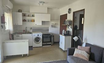 Ideally located 2 minutes' walk from the beach, 50 m from a number of local shops and 20 minutes' walk from the town centre. Air-conditioned 2-room apartment with living room and fully-equipped kitchen (washing machine, dishwasher, fridge-freezer, microwave, multi-function oven, 4-ring induction hob, extractor hood, Nespresso, filter coffee machine). The bedroom has a new 160 x 200 bed and a smart TV (Netflix, Prime Video, TNT). The living room has a 140 x 200 sofa bed for one adult or two children. Private garden with dining area (gas barbecue) and enclosed parking.About pets:No pets allowed.About checkOut:Check out before 11:00 AM.About children:Children allowed: ages 0-17.About checkIn:Check in after 4:00 PM.About smoking:Smoking is not permitted.About events:No events allowed.