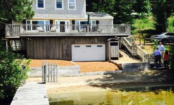 Beautiful home with New England charm. This home is waterfront on beautiful Lake Waquaquet. The home sits at the end of a private portion of the lake. Have a drink on the oversized front deck, relax on the private beach right in front of the house or fish off the dock. This home is only one of a handful with a private dock and beach! The house sits on Lake Waquaquet with absolutely stunning views. Relax inside with plenty of seating or sit outside on the 30-foot deck perched above our private sandy beach that is just feet from the lake. With 4 bedrooms and two baths the home can comfortably fit medium to large size groups. The house is ideally situated 10 minutes from Hyannis and just minutes to Craigville beach. The main floor of the home is open concept and has an updated kitchen, dining table and living area that overlook the lake. Hardwood floors through out the downstairs. All 4 bedrooms are on the second floor. The upstairs has new wall to wall carpet through out. Three kayaks, a paddle board, a lily pad and a canoe are provided. We ask guests to bring their own sheets or you can rent them for a fee (professionally cleaned). Wifi and basic cable included. Flat screen TV on the main floor, outdoor propane grill (renters are responsible to fill their own tank) Frequently asked questions! Please read before booking so you know what to expect Who is this home best suited for? Most of our guests are families getting together enjoying cape cod. We do not accommodate bachelor or bachelorette parties. Can I swim in front of the house? Yes! You can absolutely swim in front of the house. Is there a beach in front of the house? Yes, we have a private sandy beach. this space is great for families and groups of friends getting together. If you looking for something pristine this is more of a relaxed lived in feeling it's perfect for your family.About pets:Pets allowed: dogs and cats less than 50 lbs per pet (limit 2 pets total).There is an additional pet fee..About checkOut:Check out before 10:00 AM.About children:Children allowed: ages 0-17.About checkIn:Check in after 3:00 PM.About smoking:Smoking is not permitted.About minBookingAge:Minimum age to rent: 28.About events:No events allowed.