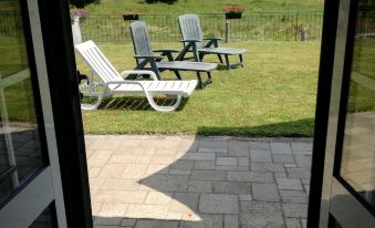It also has a lawn area as well as a table / chairs / umbrella set and a barbecue to make the roasts you like.