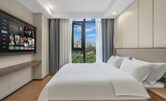 過來出差臨時搜的,發現了這家寶藏酒店,價格不貴,但是房間設施給人的感覺都很高級,智能馬桶電動窗簾,電視也特別大!!投屏還不要錢!!忙完工作在電視上追會兒劇也太安逸了吧,晚上睡覺外面也很安靜,走的時候前台小姐姐也很熱情,入住體驗很棒,必須好評!!