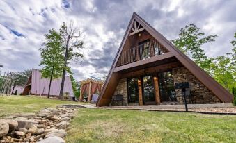 There are three identically designed A-frame cabins and a lodge on this completely fenced in and gated property.About pets:No pets allowed.About checkOut:Check out before 10:00 AM.About children:Children allowed: ages 0-17.All children welcome with adult supervision!.About checkIn:Check in after 4:00 PM.About smoking:Smoking is not permitted.About minBookingAge:Minimum age to rent: 21.About events:No events allowed.