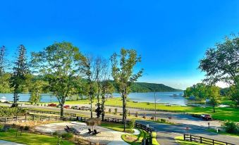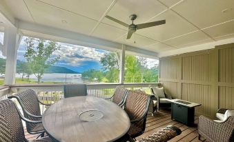 Escape to our cozy studio and experience fall at this beautiful brand new lakefront property. It's surrounded by beautiful acreage, woods, and BREATHTAKING unrestricted lake views! Soak up the sun by the outdoor pool (heated ONLY during fall & spring) or unwind in the bubbling hot tub. On chilly evenings, cozy up by the wood burning fire pit (wood provided) and roast some s'mores or enjoy the private propane fire pit (propane provided) on your gorgeous balcony. Feel like staying in? Lose yourself in a movie on the smart TV that has tons of satellite/cable channels.