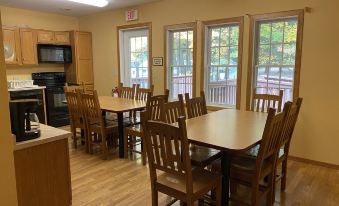 Our retreat house is the perfect place for family gatherings. Large living room with gas fireplace opens onto spacious kitchen/dining room. Two single bedrooms and one large bedroom are on the left, and two large bedrooms are on the right. Each side also has multiple bathrooms.