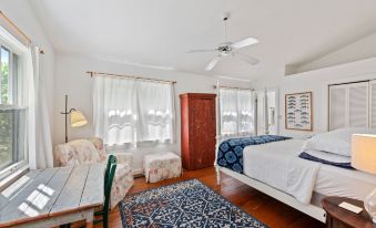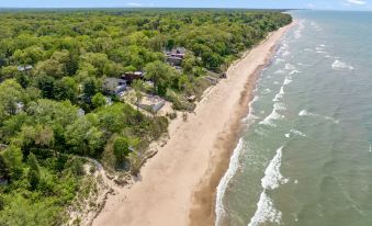 Set on a quiet side street, the cottage’s fenced backyard and lush landscaping give the property the feel of a hidden oasis. A rustic detached gazebo is great for cool drinks and card games. Best of all, a walkable private beach is right at the end of the block, ready for you to spend sunny days soaking up the sun and enjoying Lake Michigan!