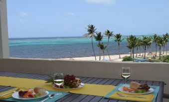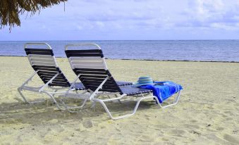 Down a flight of stairs, the beach awaits with hammocks available to laze the day away in the beautiful ocean breezes or kayaks for the more adventurous. The clear waters and bay that is protected by a reef are great for kids to swim in or for beginning snorkelers to learn how to breathe underwater. The sea grass in the water supports lots of marine life including baby sea turtles and small fish.